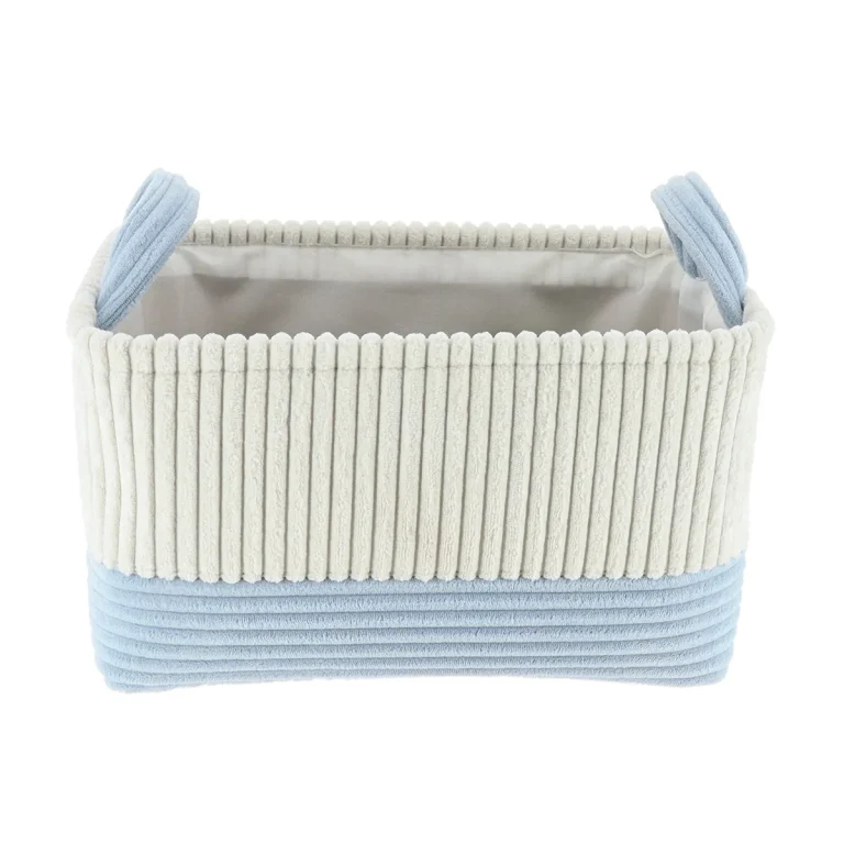 51,00 leiCOȘ RUFE BICOLOR CATIFELAT RECTANGULAR MIC 28X16X16 CM – ALB / AZUR | ORGANIZATOARE BAIE