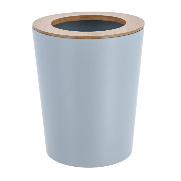 COȘ GUNOI METALIC 5L CAPAC BAMBUS – AZUR | COȘURI DE GUNOI BAIE