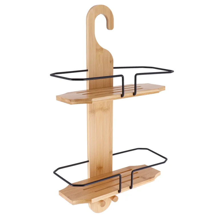 297,00 leiSUPORT COSMETICE 2 NIVELURI BAMBUS/METAL CU CÂRLIG – BAMBOO / NEGRU | ETAJERE BAIE