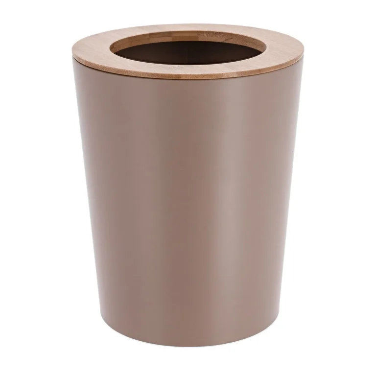 COȘ GUNOI METALIC 5L CAPAC BAMBUS – CAPPUCCINO | COȘURI DE GUNOI BAIE