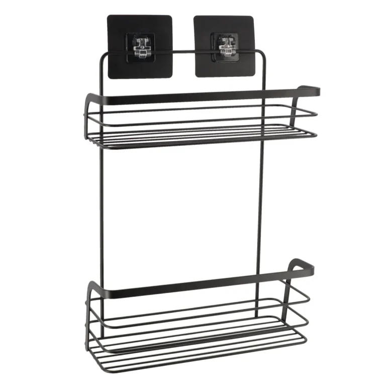 746,00 leiSUPORT COSMETICE CADDY 2 RAFTURI CU ADEZIV OTEL INOX – NEGRU | ETAJERE BAIE
