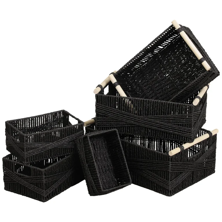 114,00 leiSET 6 X COȘ DEPOZITARE DIN HÂRTIE / METAL – NEGRU | ORGANIZATOARE BAIE SET