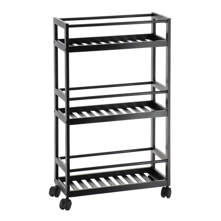 56,00 leiCARUCIOR DIN BAMBUS CU 3 RAFTURI PE ROTI – NEGRU | ETAJERE BAIE