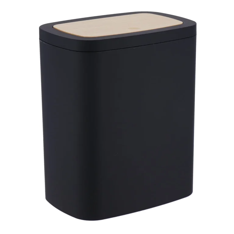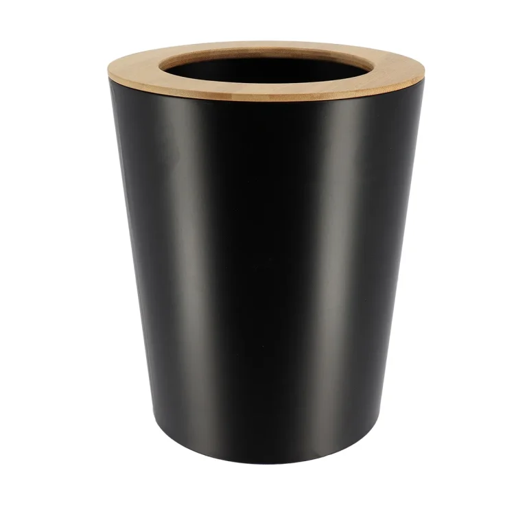 COȘ GUNOI PLASTIC 5L CAPAC BAMBUS – NEGRU | COȘURI DE GUNOI BAIE