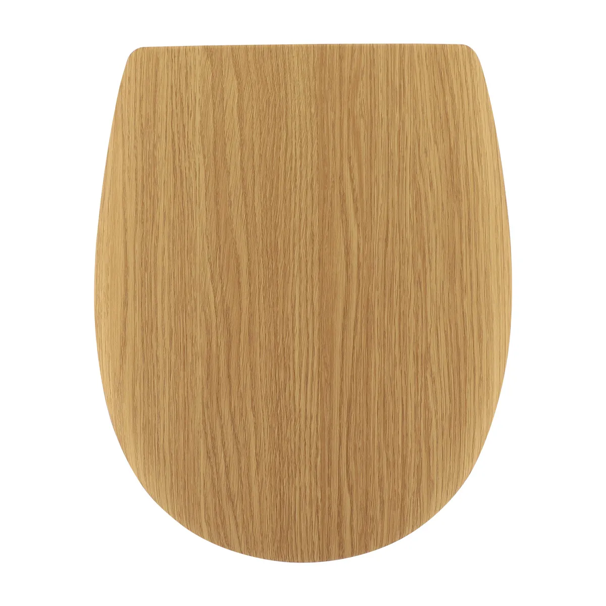 CAPAC TOALETĂ 45 CM MDF PRINDERI INOX – DESIGN LEMN | CAPACE WC ESTE UN CAPAC WC GÂNDIT PENTRU CONFORT ȘI IGIENĂ ÎN BAIA DE ACASĂ. MATERIALUL DIN MDF + PVC, ÎN CULOAREA LEMN, ESTE REZISTENT LA ZGÂRIETURI ȘI LA PRODUSELE DE CURĂȚENIE UZUALE. SISTEMUL DE PRINDERE ASIGURĂ MONTAJ RAPID ȘI FIXARE STABILĂ PE VASUL DE TOALETĂ. ÎN FUNCȚIE DE MODEL, MECANISMUL DE ÎNCHIDERE OFERĂ COBORÂRE LENTĂ, REDUCÂND ZGOMOTELE ȘI ȘOCURILE. DIMENSIUNILE DE APROXIMATIV ȘI FORMA CAPACULUI ÎL FAC POTRIVIT PENTRU MAJORITATEA VASELOR WC STANDARD. ȚARA DE ORIGINE: CN.