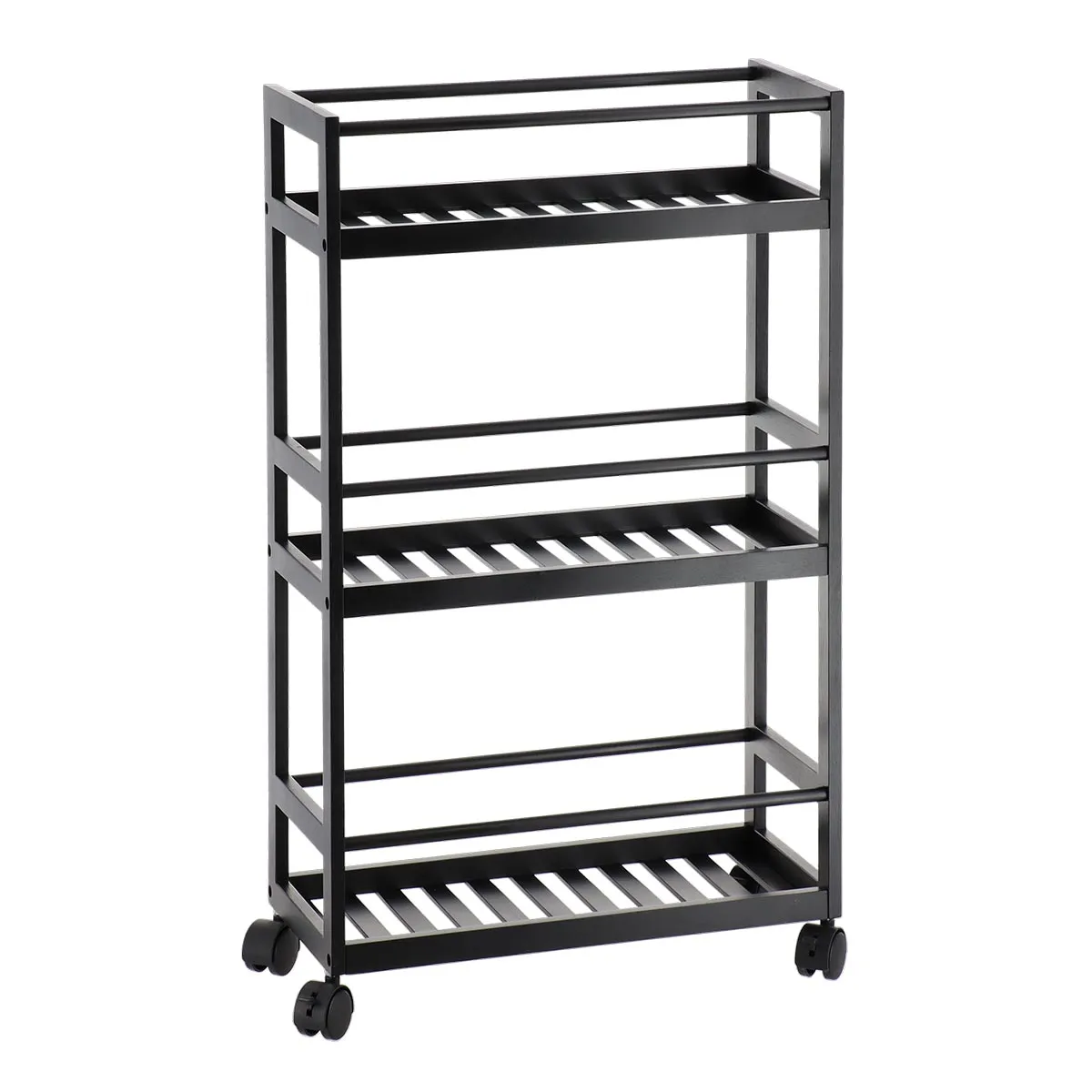 CARUCIOR DIN BAMBUS CU 3 RAFTURI PE ROTI – NEGRU | ETAJERE BAIE