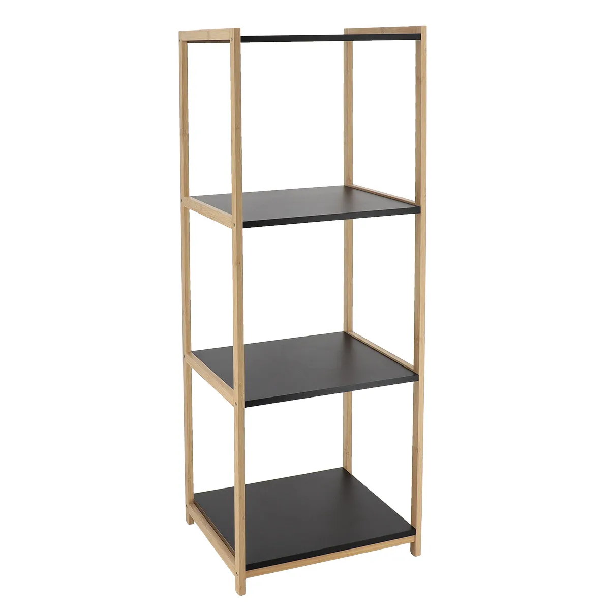 CORP MOBILIER 4 RAFTURI MDF – BAMBOO / NEGRU | MOBILIER DEPOZITARE BAIE ESTE UN DULAP DE BAIE PENTRU DEPOZITAREA PROSOAPELOR, COSMETICELOR ȘI PRODUSELOR DE CURĂȚENIE. REALIZAT DIN MDF, ÎN FINISAJUL NEGRU, OFERĂ SPAȚIU GENEROS DE ORGANIZARE.