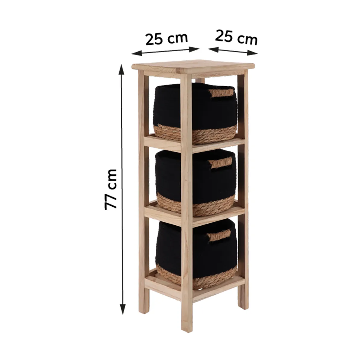 Corp mobilier lemn 3 cosuri Bumbac/Iarba de mare 77x25x25 cm – Natural/Negru | Mobilier depozitare baie