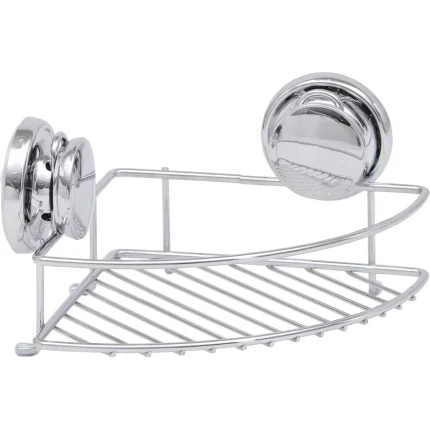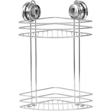 COȘ COSMETICE COLT 2 NIVELURI CU VENTUZE METAL – CROM | ETAJERE BAIE