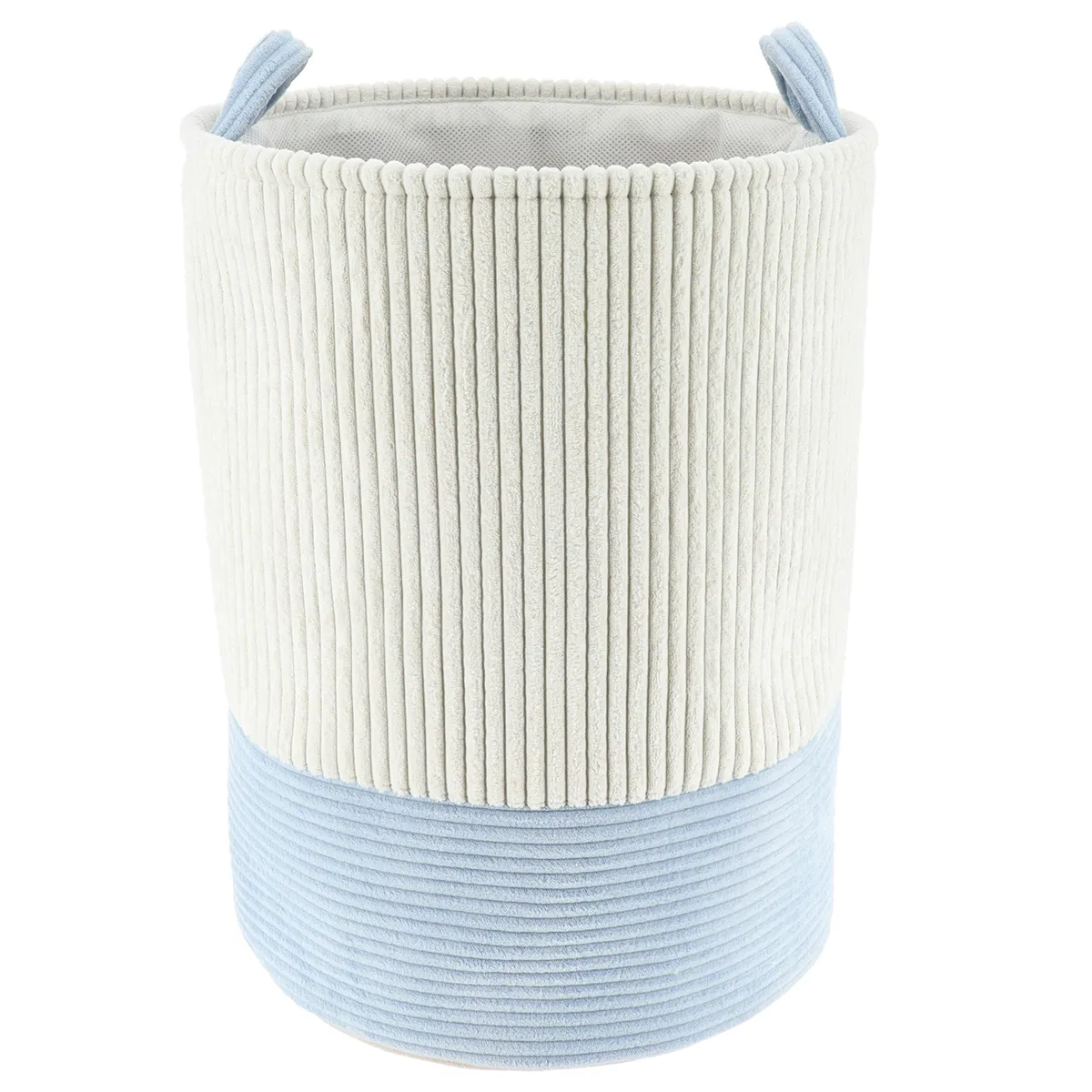 COȘ RUFE BICOLOR CATIFELAT 40X54 CM MARE – ALB / AZUR | ORGANIZATOARE BAIE ESTE UN COȘ DE DEPOZITARE PENTRU BAIE, IDEAL PENTRU ORGANIZAREA PROSOAPELOR, COSMETICELOR ȘI ACCESORIILOR DE ZI CU ZI. REALIZAT DIN POLYESTER + TEXTIL + PVC, ÎN CULOAREA ALB/AZUR, SE INTEGREAZĂ UȘOR ÎN ORICE BAIE.