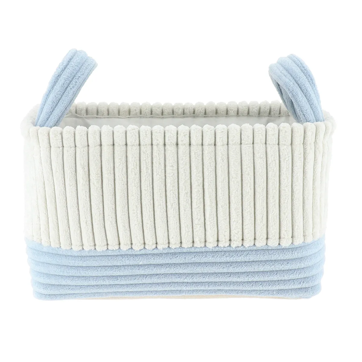 COȘ RUFE BICOLOR CATIFELAT RECTANGULAR MEDIU 32X20X18 CM – ALB / AZUR | ORGANIZATOARE BAIE ESTE UN COȘ DE DEPOZITARE PENTRU BAIE, IDEAL PENTRU ORGANIZAREA PROSOAPELOR, COSMETICELOR ȘI ACCESORIILOR DE ZI CU ZI. REALIZAT DIN POLYESTER + TEXTIL + PVC, ÎN CULOAREA ALB/AZUR, SE INTEGREAZĂ UȘOR ÎN ORICE BAIE.
