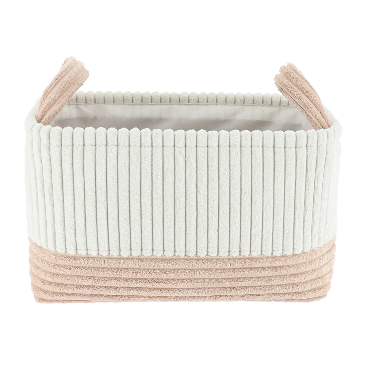 COȘ RUFE BICOLOR CATIFELAT RECTANGULAR MEDIU 32X20X18 CM – ALB / BEJ | ORGANIZATOARE BAIE