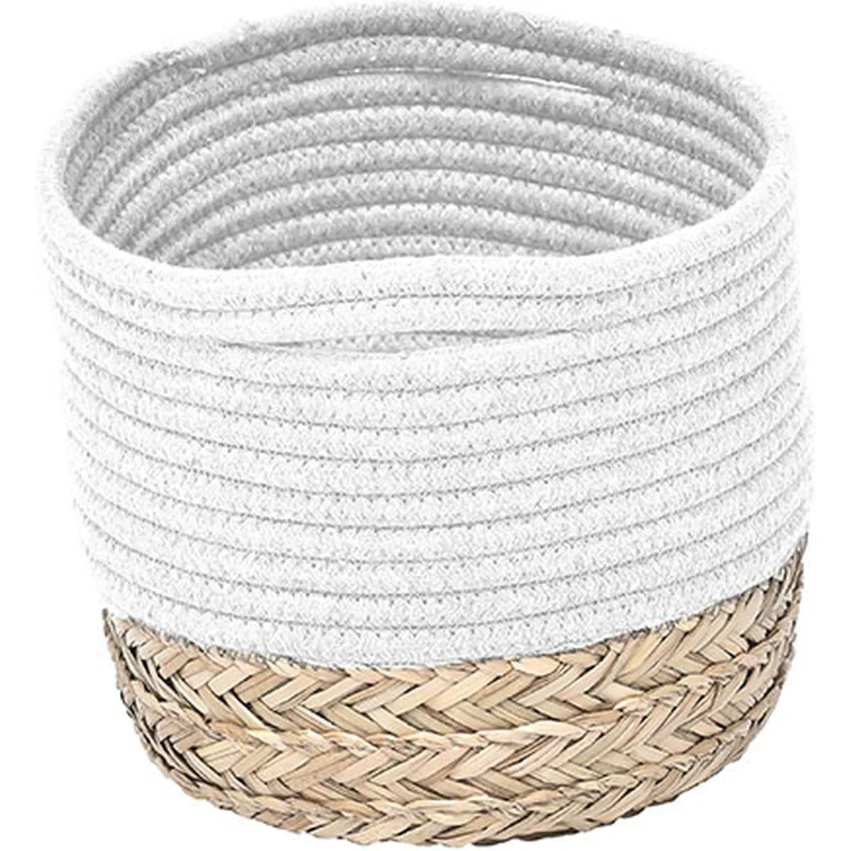COȘ RUFE BUMBAC / IARBA DE MARE 30X22X17 CM – ALB / NATURAL | ORGANIZATOARE BAIE