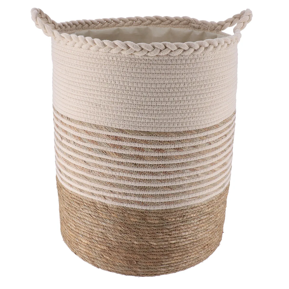 COȘ RUFE IUTA/BUMBAC/POLIESTER MARE 40X50 CM – NATURAL/BEJ | ORGANIZATOARE BAIE ESTE UN COȘ DE DEPOZITARE PENTRU BAIE, IDEAL PENTRU ORGANIZAREA PROSOAPELOR, COSMETICELOR ȘI ACCESORIILOR DE ZI CU ZI. REALIZAT DIN POLYESTER + TEXTIL + PVC, ÎN CULOAREA BEJ, SE INTEGREAZĂ UȘOR ÎN ORICE BAIE.