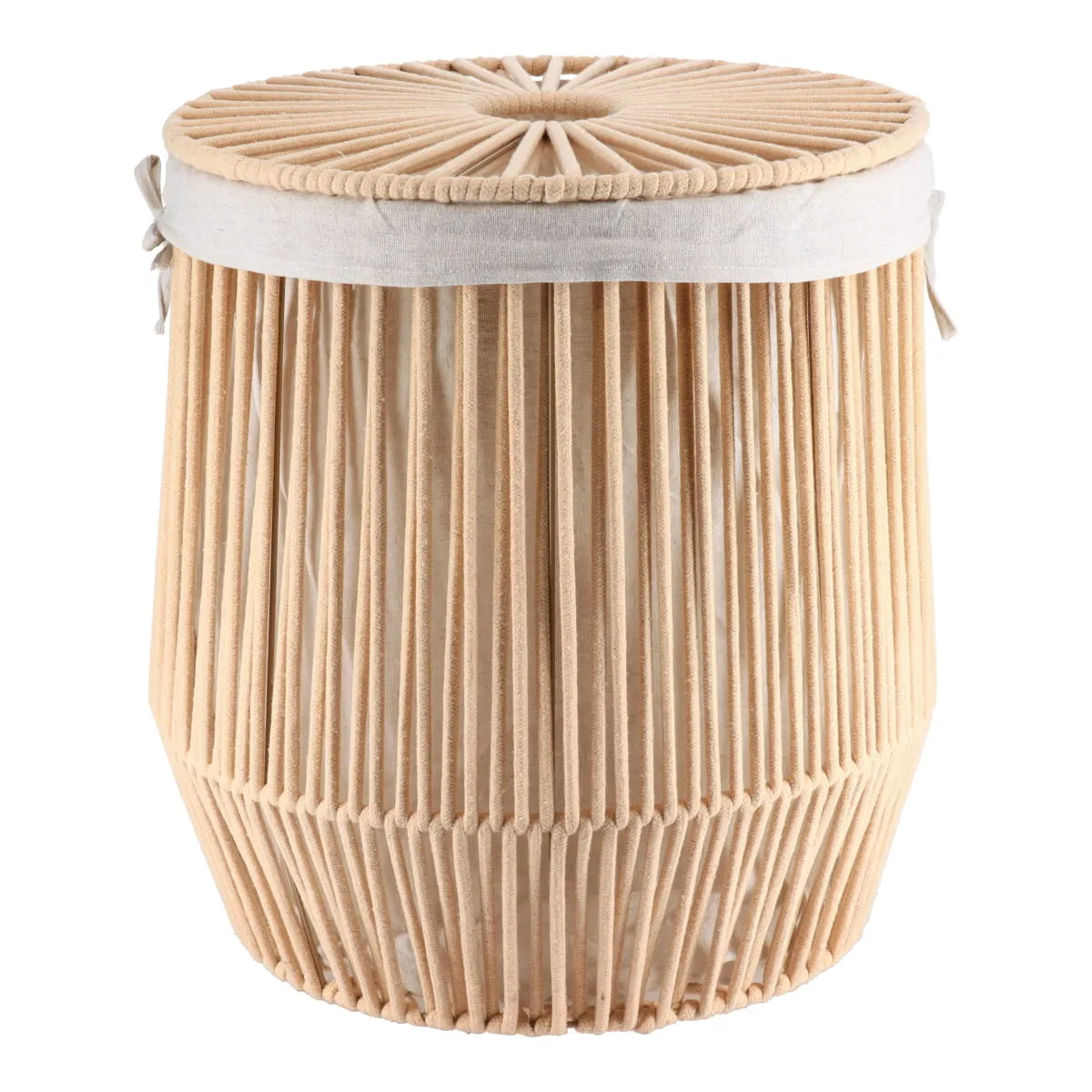 COȘ RUFE MARE CU CAPAC EFECT SFOARĂ POLIESTER / BUMBAC 45X50 CM – BEJ | ORGANIZATOARE BAIE