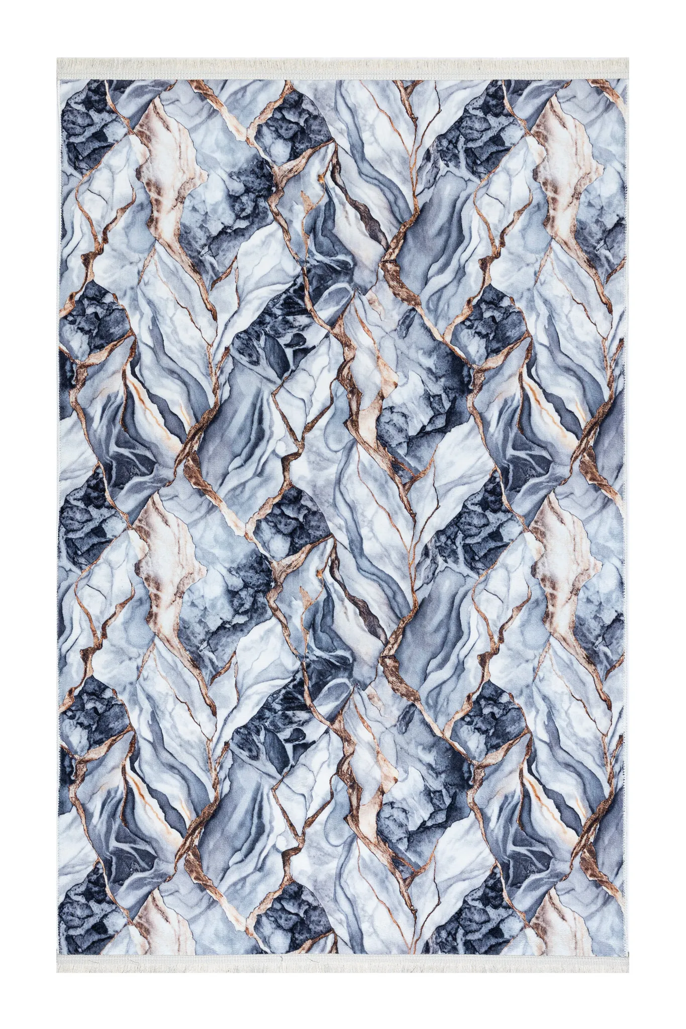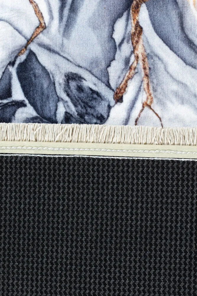 Este un covor fabricat în Turcia, cu înălțime a firului de 7 mm și greutate de 850 gr/mp. Spatele cauciucat reduce semnificativ alunecarea pe orice tip de pardoseală — gresie, parchet sau laminat.