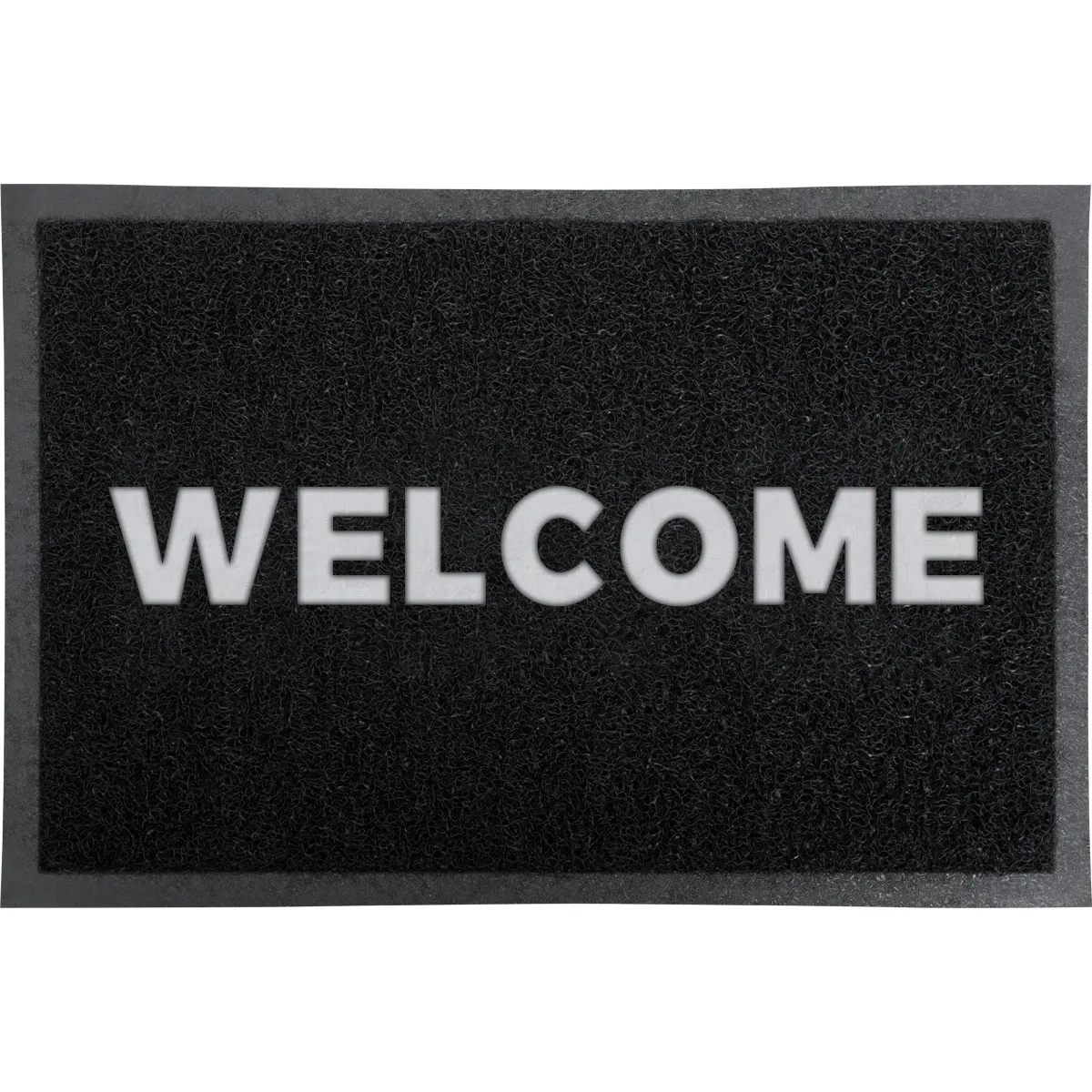 COVOR INTRARE 40X60 CM – WELCOME POLYESTER+PVC, CULOARE NEGRU, COVOR DE INTRARE REZISTENT, CAUCIUCATE. POTRIVIT PENTRU HOLURI, SPAȚII DE ACCES ȘI ZONE CU TRAFIC INTENS. ȚARA DE ORIGINE: CN.