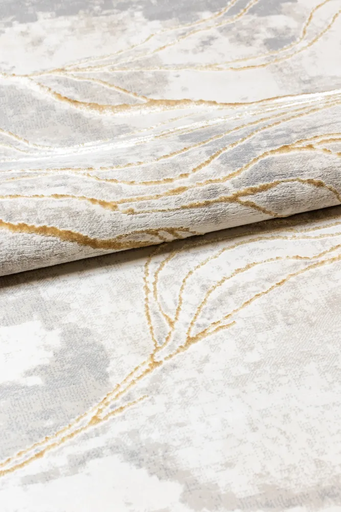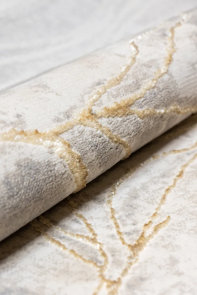 Oferă casei tale eleganța unică a marmurei cu covorul modern MARMO 52809A AURIU / GRI din noua colectie de covoare moderne.