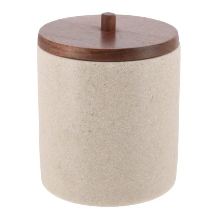 CUTIUȚĂ ROTUNDĂ BAMBOO ESTE O CUTIE PENTRU COSMETICE DE BAIE, UTILĂ PENTRU DEPOZITAREA ORDONATĂ A PRODUSELOR MICI DE ÎNGRIJIRE. REALIZATĂ DIN LEMN, ÎN CULOAREA BAMBOO, AJUTĂ LA PĂSTRAREA ACCESORIILOR LA ÎNDEMÂNĂ PE BLATUL LAVOARULUI SAU ÎNTR-UN SERTAR.