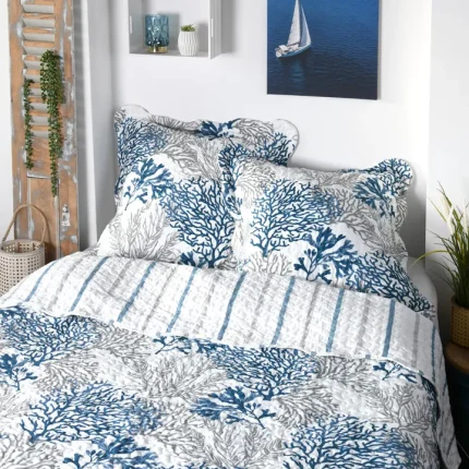 375,00 leiCuvertură matlasată Quiberon 260X240 cm, 2 fețe de pernă 65X65 cm, culoare Gri/Albastru, 100% poliester