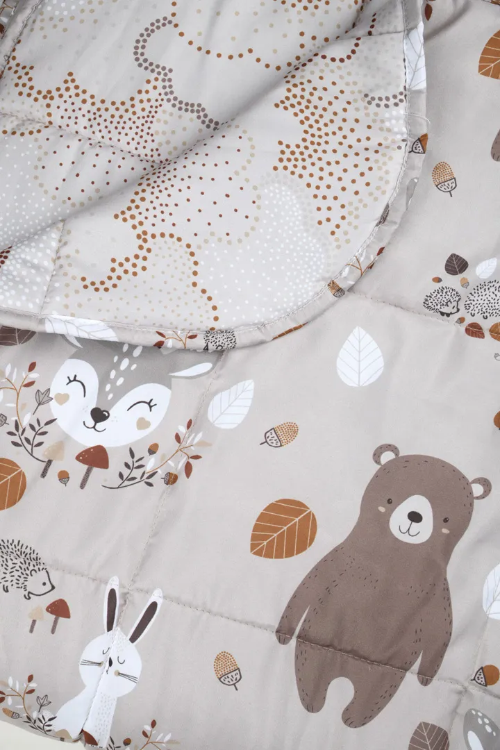 Cuvertura matlasată Gabin 160X220 cm, culoare Natural, 100% poliester este ideală pentru camera copiilor, oferind un aspect plăcut și un plus de confort. Designul cu model jucăuș și nuanțele naturale creează o atmosferă caldă și relaxantă.