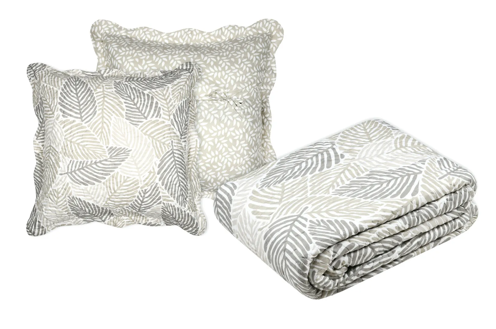 375,00 leiCuvertură matlasată Cleo 260X240 cm, 2 fețe de pernă 65X65 cm, culoare Greige, 100% poliester