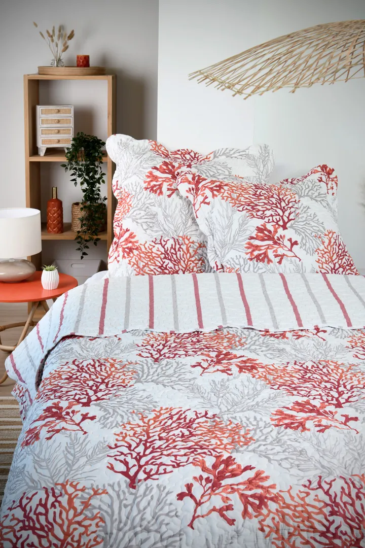 Cuvertura matlasată Quiberon 260X240 cm, culoare coral, 100% poliester este potrivită pentru dormitor, pentru protejarea lenjeriei și un aspect îngrijit al patului. Oferă un plus de confort și completează decorul. Material: 100% poliester; întreținere: conform etichetei.