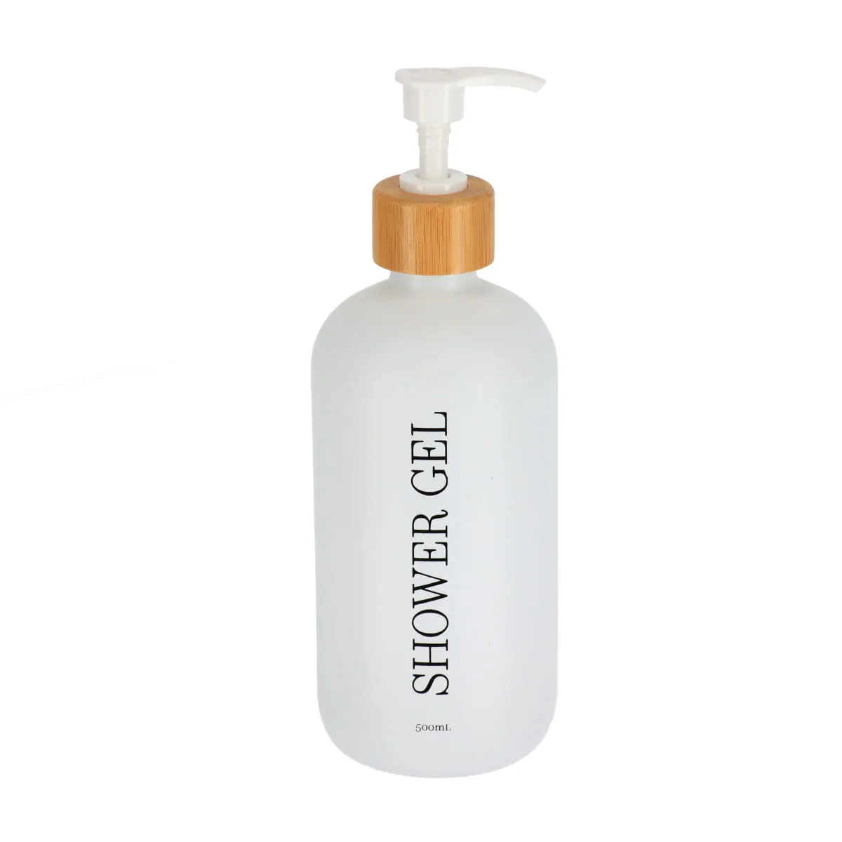 DISPENSER GEL DUȘ 500ML STICLĂ/ BAMBUS – ALB MAT