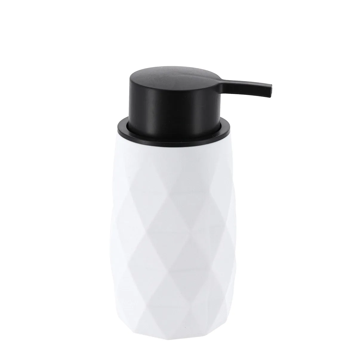 DISPENSER SĂPUN PLASTIC 210 ML – ALB / NEGRU ESTE UN DISPENSER PENTRU SĂPUN LICHID, IDEAL PENTRU UTILIZAREA ZILNICĂ LA LAVOAR. REALIZAT DIN PLASTIC, ÎN CULOAREA ALB / NEGRU, SE INTEGREAZĂ UȘOR ÎN ORICE BAIE.