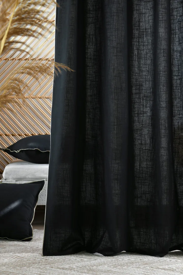 Draperia Helios 140X260 cm, culoare negru, 100% bumbac este potrivită pentru living sau dormitor, pentru intimitate și un ambient plăcut. Țesătura ajută la filtrarea luminii și completează decorul. Material: 100% bumbac; întreținere: conform etichetei.