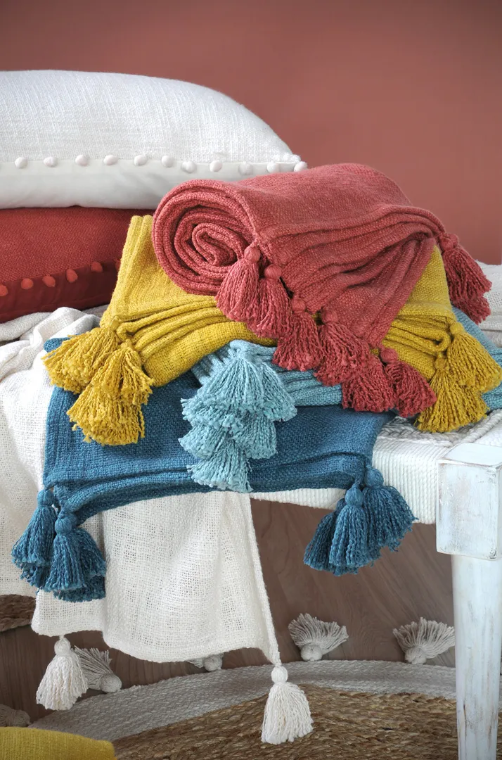 Pătură Sanchez 125×150 cm, culoare roșu, 100% bumbac – o pătură decorativă naturală și confortabilă, ideală pentru a aduce un plus de căldură și culoare locuinței tale. Confecționată integral din bumbac de calitate, pătura este moale, respirabilă și plăcută la atingere, fiind potrivită pentru utilizare zilnică. Dimensiunea de 125×150 cm o face ideală pentru living sau dormitor, perfectă pentru canapea, fotoliu sau pat. Nuanța intensă de roșu oferă un accent elegant și cald decorului, integrându-se armonios atât în amenajări clasice, cât și moderne. Pătura Sanchez îmbină simplitatea materialelor naturale cu un design atemporal, fiind o alegere practică și o idee de cadou inspirată. Fabricat în India. Întreținere: respectați instrucțiunile de pe etichetă.