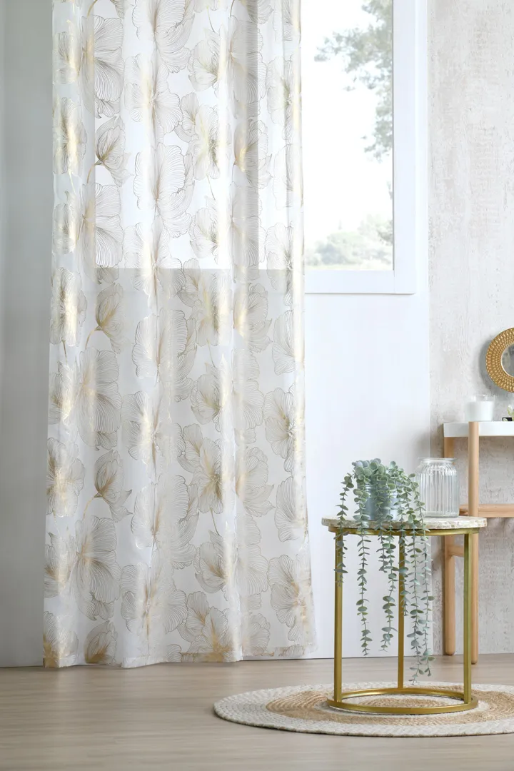 Perdeaua Leonce 140X260 cm, culoare auriu, 100% poliester este potrivită pentru living, dormitor sau birou, pentru a filtra lumina și a oferi intimitate. Se combină ușor cu draperii pentru un plus de confort vizual. Material: 100% poliester. Întreținere: conform etichetei.