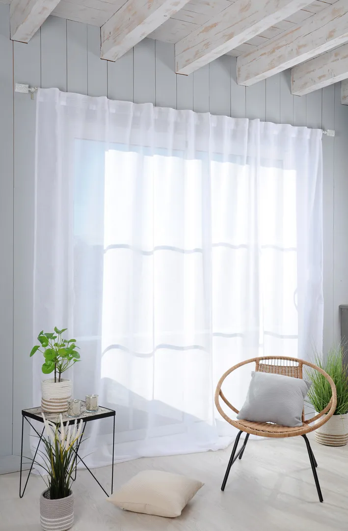 Perdeaua Madrid 290X260 cm, culoare alb, 100% poliester este potrivită pentru living, dormitor sau birou, pentru a filtra lumina și a oferi intimitate. Se combină ușor cu draperii pentru un plus de confort vizual. Material: 100% poliester. Întreținere: conform etichetei.