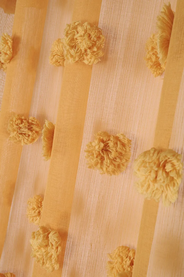 Perdeaua Pompinou 135X260 cm, culoare muștar, 100% poliester este potrivită pentru living, dormitor sau birou, pentru a filtra lumina și a oferi intimitate. Se combină ușor cu draperii pentru un plus de confort vizual. Material: 100% poliester. Întreținere: conform etichetei.