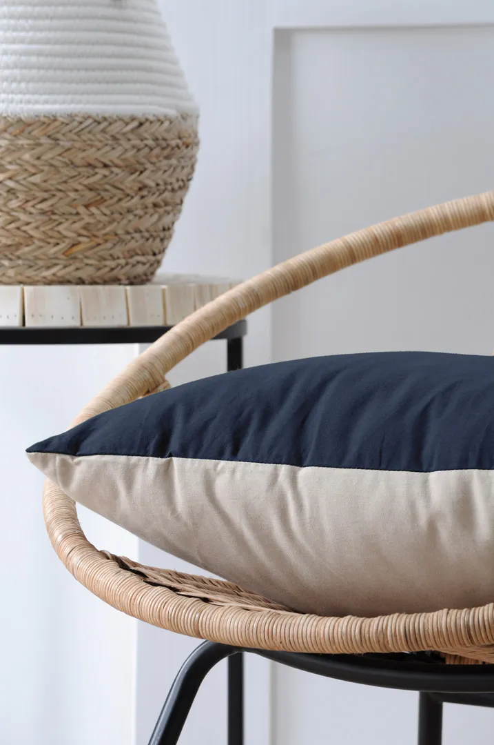 Perna decorativă Duo 50X50 cm, culoare albastru/in, 100% bumbac este potrivită pentru living, dormitor sau zona de relaxare. Oferă confort și adaugă un accent decorativ. Material: 100% bumbac; întreținere: conform etichetei.