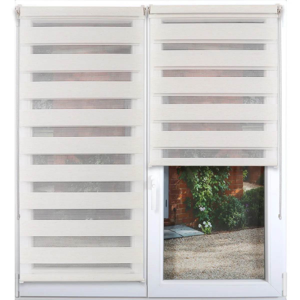 RULOU ZEBRA 60X180 CM – CREM COMPOZIȚIE POLYESTER | JALUZELE SUNT RULOURI TEXTILE TIP ZEBRA ZI-NOAPTE, CU DOUĂ STRATURI DE MATERIAL DISPUSE ÎN BENZI ALTERNATIVE TRANSPARENTE ȘI OPACE. PERMIT REGLAREA PRECISĂ A LUMINII ȘI A INTIMITĂȚII PRIN SUPRAPUNEREA FÂȘIILOR. DIMENSIUNEA MATERIALULUI ESTE 57 X 180 CM, IAR CULOAREA CREM SE POTRIVEȘTE UȘOR ÎN DECORUL INTERIOR. SUNT REALIZATE DIN POLYESTER, REZISTENTE ȘI UȘOR DE ÎNTREȚINUT. SET ACCESORII DE PRINDERE SI MECANISM. SISTEMUL OFERĂ O FILTRARE A LUMINII PARTIAL, FUNCTIE DESCHIS/INCHIS, IDEALĂ PENTRU LIVING, DORMITOR SAU BIROU. PRODUS FABRICAT ÎN CN.
