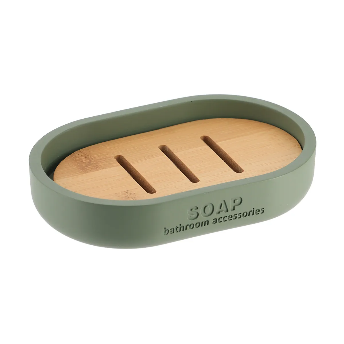 SĂPUNIERA POLIRĂȘINĂ / BAMBUS – KAKI ESTE O SĂPUNIERĂ DE BAIE PENTRU SĂPUN SOLID, GÂNDITĂ PENTRU A PĂSTRA SĂPUNUL CURAT ȘI USCAT ÎNTRE UTILIZĂRI. REALIZATĂ DIN POLIRĂȘINĂ, ÎN CULOAREA KAKI, SE POTRIVEȘTE UȘOR LÂNGĂ LAVOAR SAU ÎN ZONA DUȘULUI.