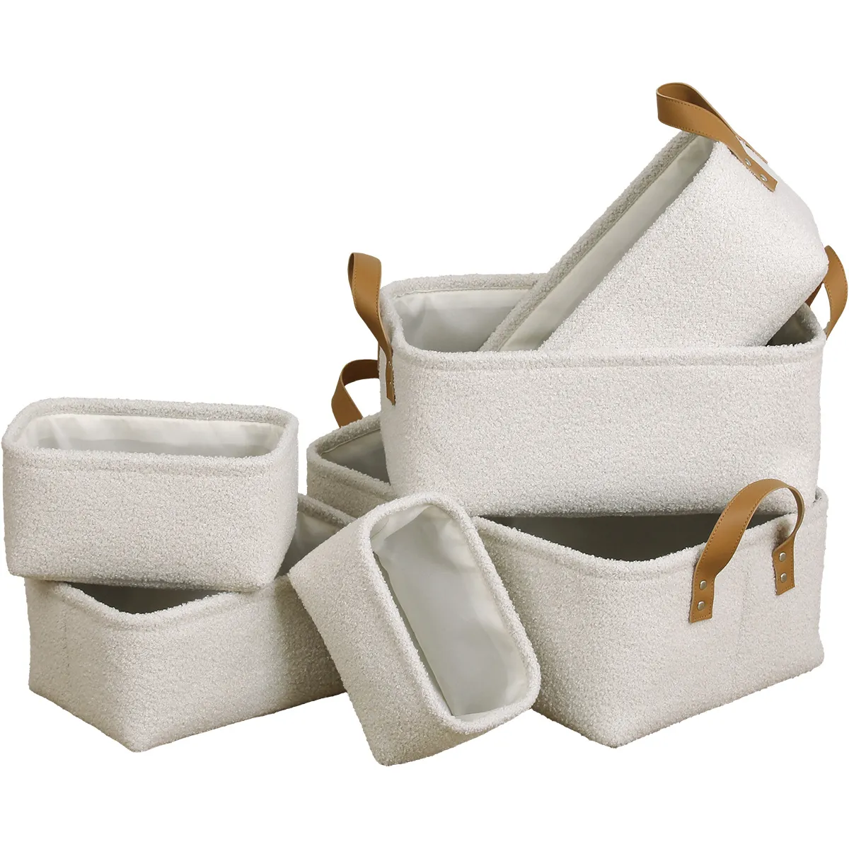 SET 6 X COȘ DEPOZITARE POLIESTER FINISAJ PUFOS – ALB | ORGANIZATOARE BAIE SET